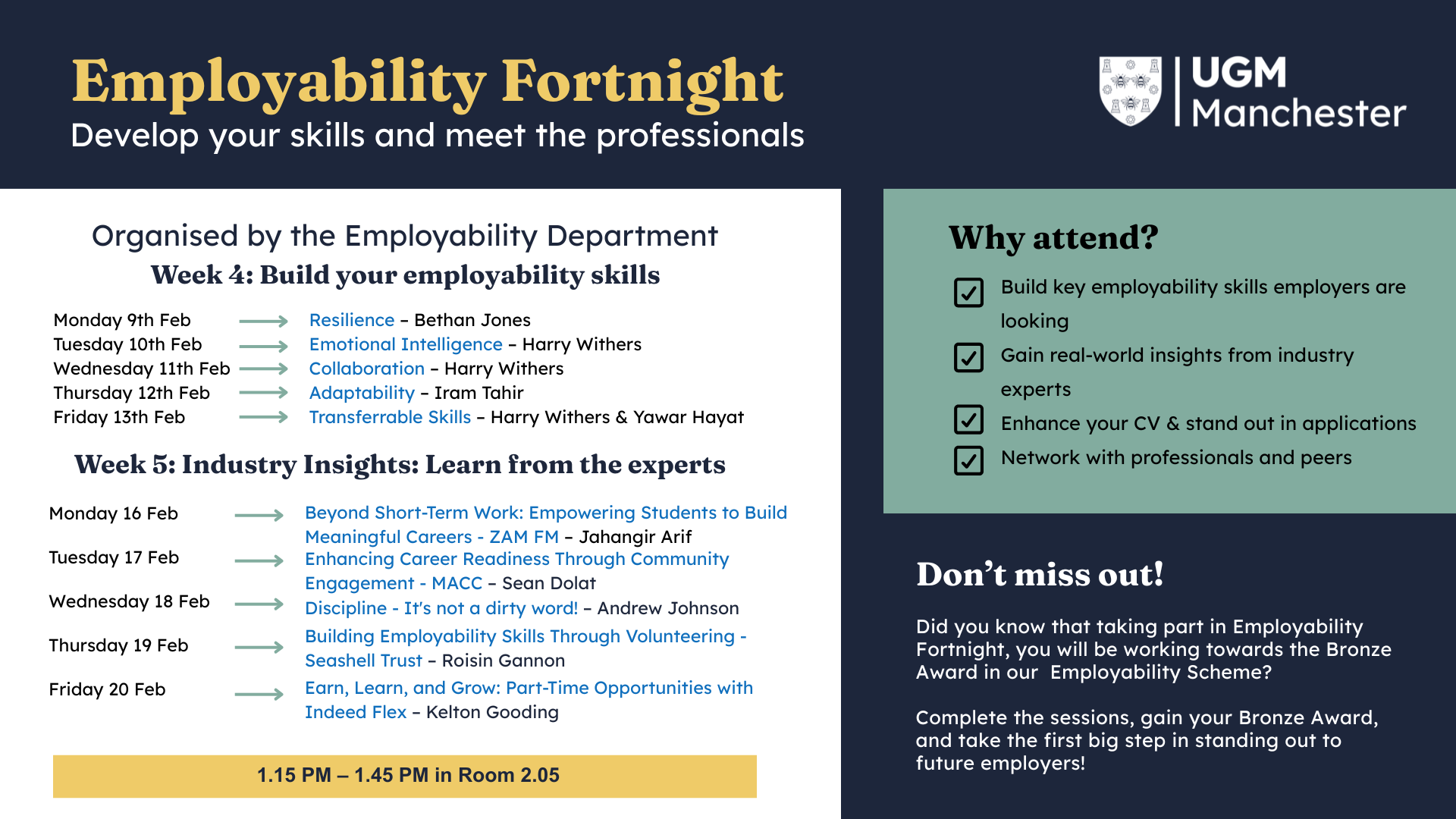 During Weeks 4 and 5 of Trimester 2 in the 2025/26 academic year, UGM Manchester hosted its Employability Fortnight, a two-week programme dedicated to helping students enhance their career readiness and develop key employability skills.